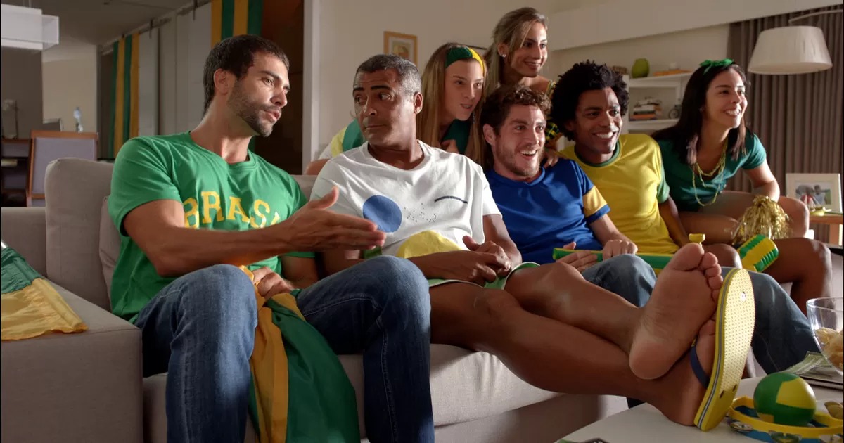 Há 10 anos, a Havaianas usou a expressão “pé direito” numa campanha com o craque Romário usando apenas o lado direito da sandália. O outro lado ele enviou para a Argentina, pra dar azar.
