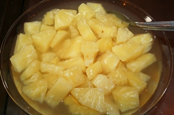 Para fazer, basta cozinhar pedaços de abacaxi em água e açúcar até formar uma calda dourada. O processo intensifica o sabor e suaviza a acidez.