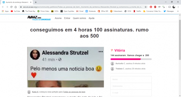 Nesta quarta-feira (21), após a blogueira Alessandra Strutzel pedir ajuda nas redes para pagar uma indenização de R$ 50 mil ao ex-presidente Lula, por celebrar a morte de seu neto Artur, foi criado um abaixo-assinado para pedir o aumento da pena.
