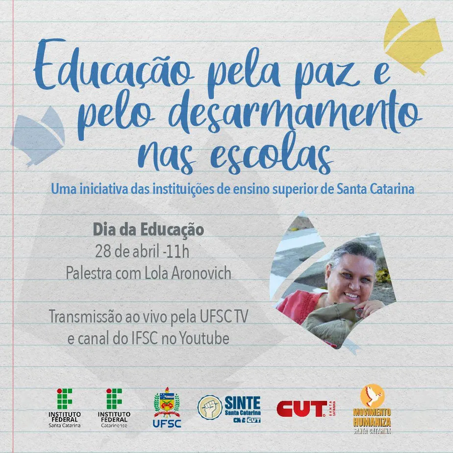 A ação integrada das instituições de ensino terá, a partir desta sexta-feira (28), atividades que incluem uma palestra da professora e ativista Lola Aronovich. O evento é promovido pela Universidade Federal de Santa Catarina (UFSC) e pelo Instituto Federal Catarinense (IFC).