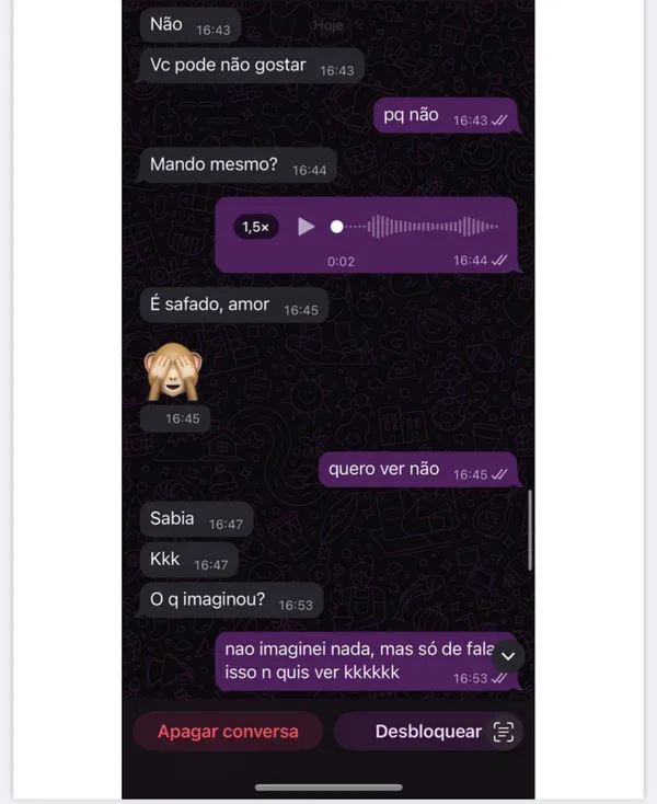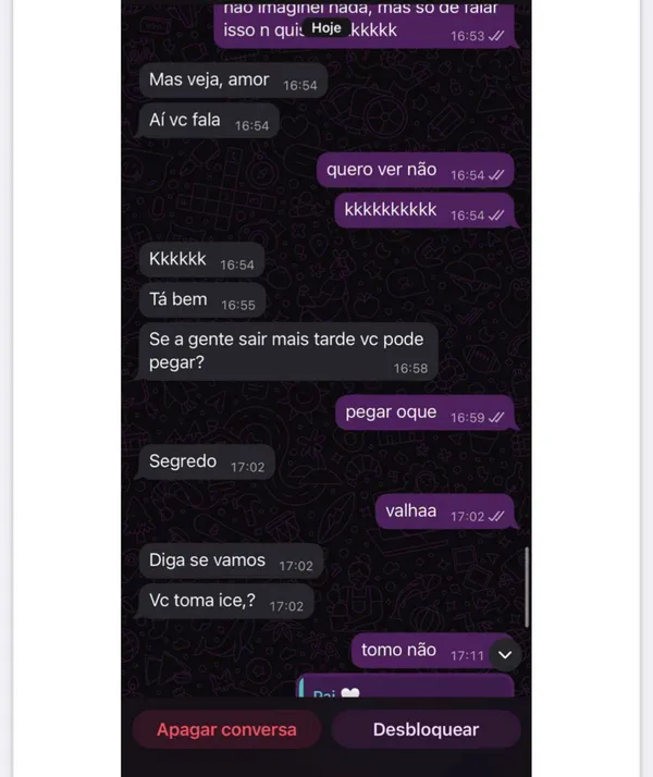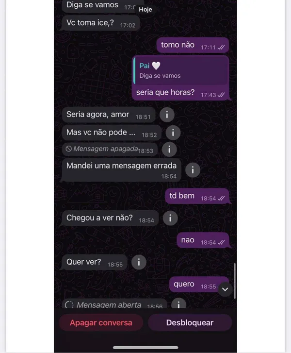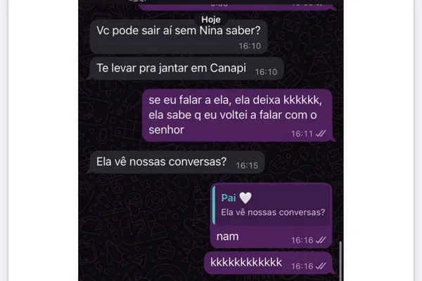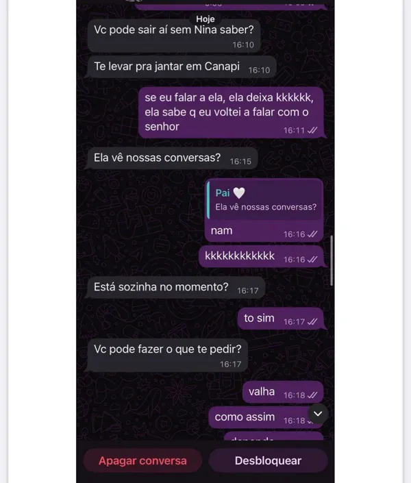Capturas de tela do inquérito mostram que o suspeito pedia encontros secretos com a filha e questionava se ela consumia bebidas alcoólicas. Após a recusa da jovem, ele enviou um vídeo íntimo, alegando ter sido “por engano”, e em seguida compartilhou outro conteúdo explícito. A vítima bloqueou o contato imediatamente e recebe acompanhamento do Conselho Tutelar.