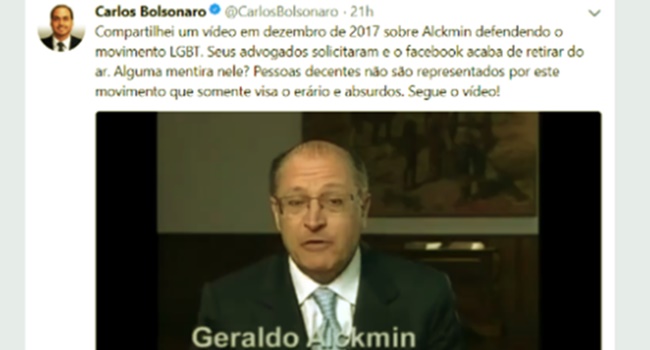 Alckmin exige que filho de Bolsonaro exclua vídeo e processa Facebook