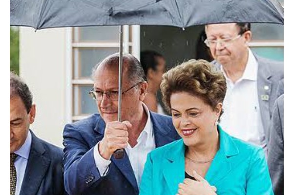 Viraliza foto de Alckmin segurando guarda-chuva para Dilma em SP