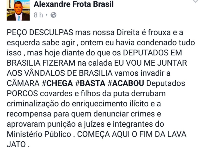 Alexandre Frota diz que “direita é frouxa” e que vai se juntar “aos vândalos de Brasília”