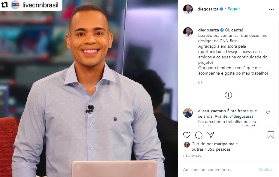 Um ano depois de pedir demissão da GloboNews e ir para a CNN Brasil, Diego Sarza foi às redes sociais, nesta quinta (15), anunciar que tomou uma nova decisão em sua carreira.