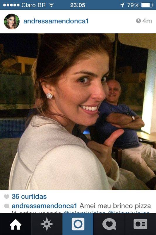 Andressa Mendonça, mulher de Carlos Augusto Ramos, o Carlinhos Cachoeira, postou na última quinta-feira (12/6) uma foto mostrando seu novo brinco. Ao fundo, está o réu Maurício Sampaio, denunciado como mandante do assassinato do cronista esportivo Valério Luiz de Oliveira, sorrindo distraído.