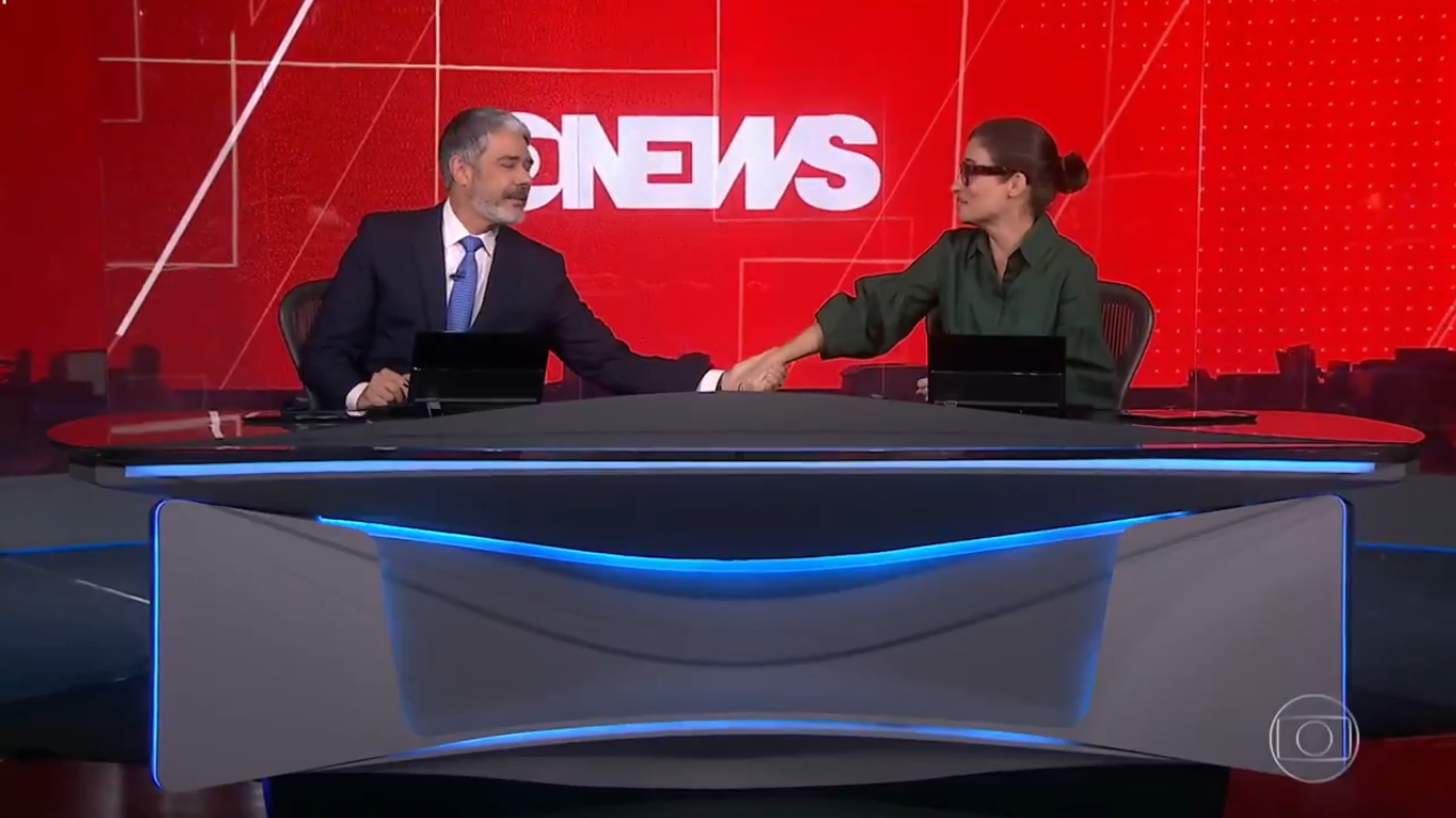 A imagem foi registrada ontem (15) quando ambos se emocionaram após a exibição de uma reportagem especial em comemoração aos 25 anos da GloboNews.