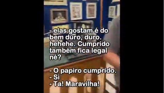 Na sequência, ele dá risada e repete: “Gosta do bem duro e cumprido fica legal, né? O papiro cumprido”.