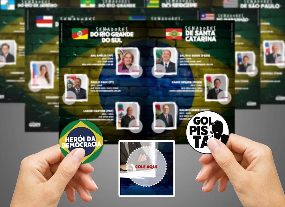 Ativistas entregam a senadores o “Álbum do Golpe” com figurinhas de “democratas” e “golpistas”