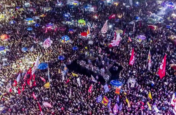 É pela democracia! Milhares de pessoas foram à Lapa para o ato da virada com Fernando Haddad e Manuela D'ÁVilla. É pelo futuro, é contra a violência.