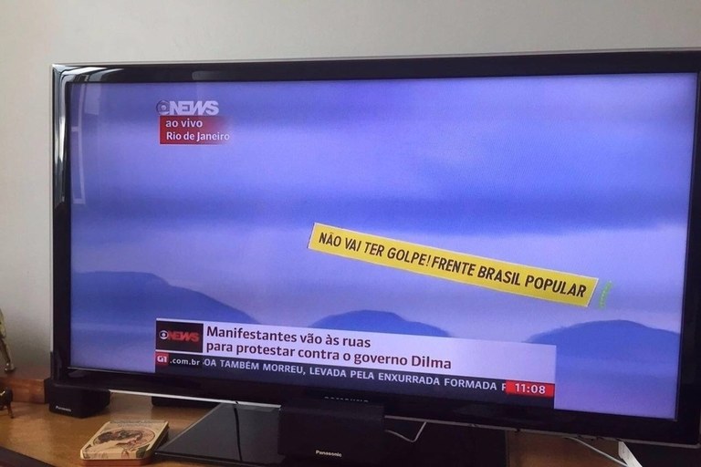 Avião com faixa escrito “Não Vai Ter Golpe” sobrevoa golpistas em Copacabana