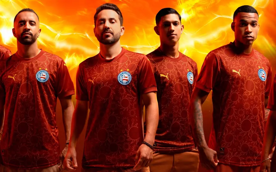 A nova camisa referencia o sertão e a força da arte nordestina, fazendo parte da campanha “Bahia de Todas as Artes”, idealizada pelo clube. Intitulada “Tropical, Novo e Marginal”, a peça traz um design arrojado, com fundo vinho e uma composição de sóis em contorno amarelo, remetendo à luz intensa que atravessa a história do sertão.