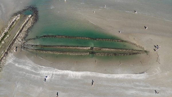 Baixa da maré em Santos revela resquícios de navio misterioso que ficou encalhado