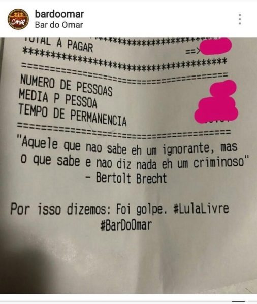 Bar do Omar, que fica em Santo Cristo, no Rio de Janeiro, imprime poesia de Brecht e diz que o impeachment de Dilma Rousseff foi um golpe.