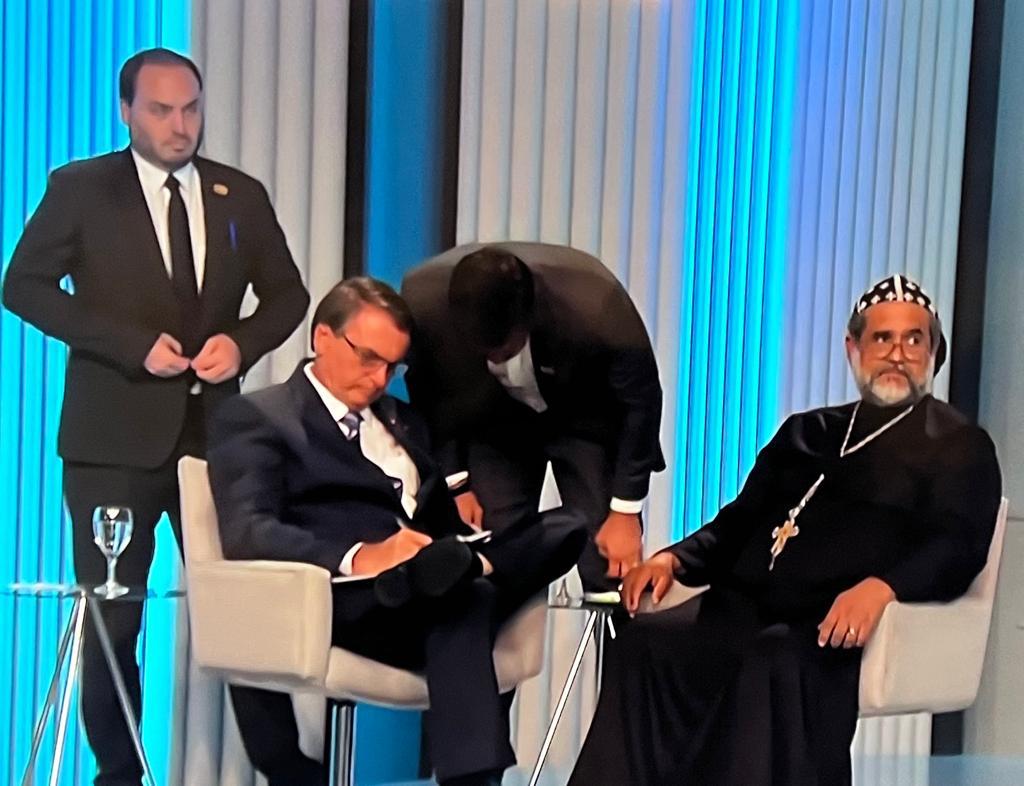 A jornalista da GloboNews Andréia Sadi publicou em seu perfil de Twitter publicou um vídeo dos bastidores no debate que mostra Jair Bolsonaro (PL) conversando como Padre Kelmon (PTB).