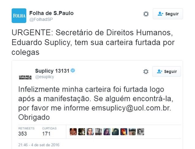 Bateram carteira de Suplicy no protesto da Paulista
