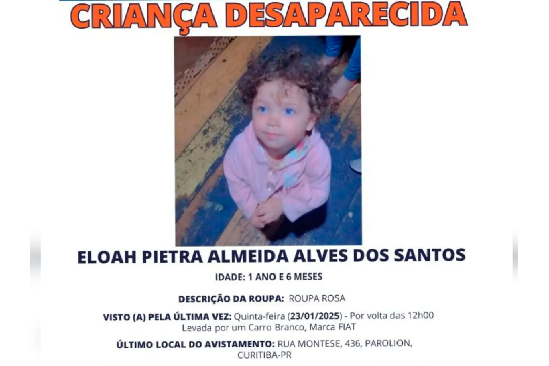 A Polícia Civil informou que Eloah foi incluída no sistema Alerta Amber, usado para divulgação rápida em redes sociais. “Estamos tratando o caso como prioridade absoluta. Todas as equipes estão empenhadas para localizar a criança e entender o que motivou o desaparecimento”, afirmou o secretário de Segurança Pública do Paraná, Hudson Leôncio Teixeira.
