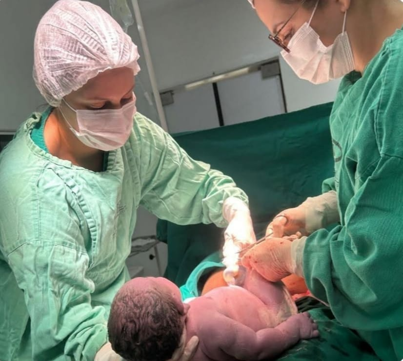 Além do tamanho do recém-nascido, outro detalhe chamou a atenção: a placenta pesava 1,220 kg. “Apenas a placenta pesava isso”, destacou Dra. Valdênia. A equipe incluiu ainda a Dra. Laura P. Ferraz, o anestesista Dr. Paulo Tostes e o pediatra Dr. Jonas Hintze Filho, além de enfermeiras e técnicas de enfermagem.