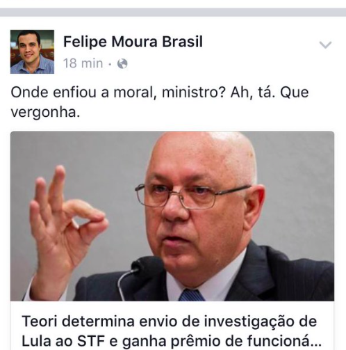 Blogueiro olavista da Veja diz que Teori “enfiou a moral” no c…