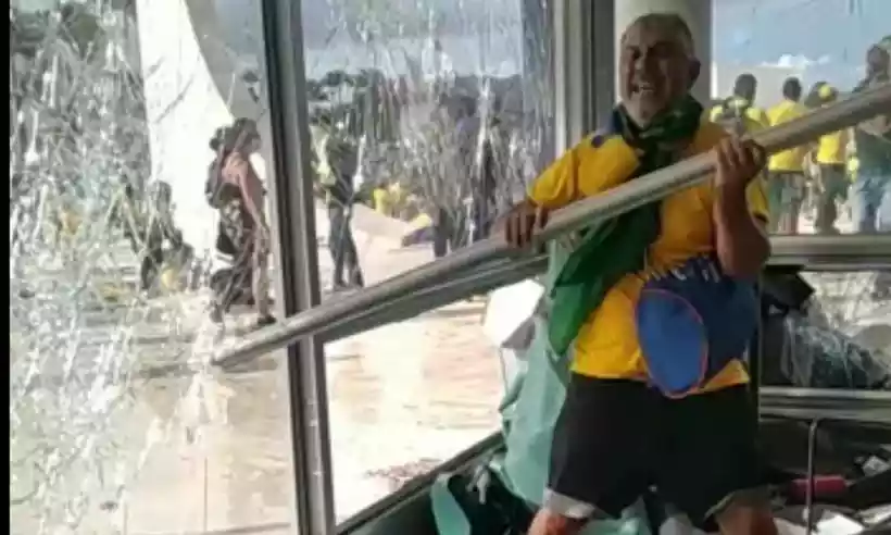 Nelson Eufrosino, de Ourinho (SP), foi detido em Bauru. O vídeo em que ele aparece destruindo as vidraças da Suprema Corte viralizou após os atos que culminaram na depredação do patrimônio público.