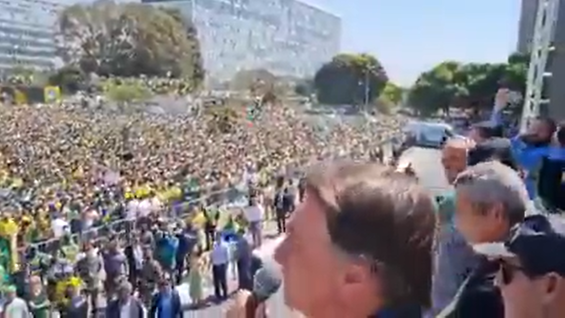 Em resposta, bolsonaristas começaram a gritar palavras de ordem depois que o presidente falou em Moraes.