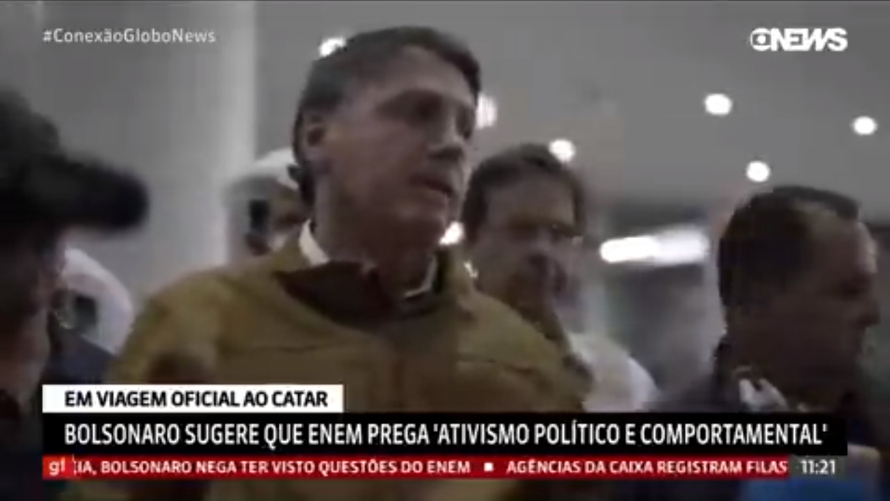 Em conversa com jornalistas no Catar, o presidente Jair Bolsonaro voltou a reclamar do Enem (Exame Nacional do Ensino Médio). Segundo ele, a prova mais importante do país é “ativismo político”.