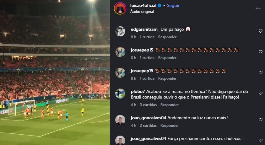 O ex-zagueiro Luisão, ídolo e recordista de títulos pelo Benfica, foi alvo de ataques racistas nas redes sociais após sair em defesa de Vinícius Júnior. O brasileiro acusou o argentino Prestianni de racismo durante a partida entre Real Madrid e Benfica, pela Champions League. No dia seguinte, Luisão contestou a versão do jogador foi ofendido por torcedores benfiquistas.
