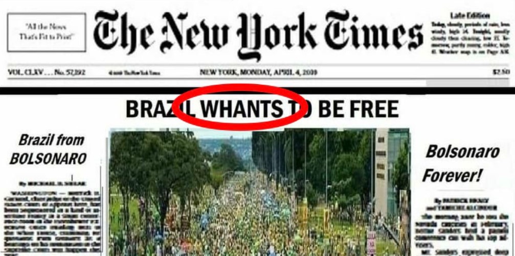 “Brazil whants to be free”: bolsonaristas inventam que manifestação saiu no New York Times e erram no inglês