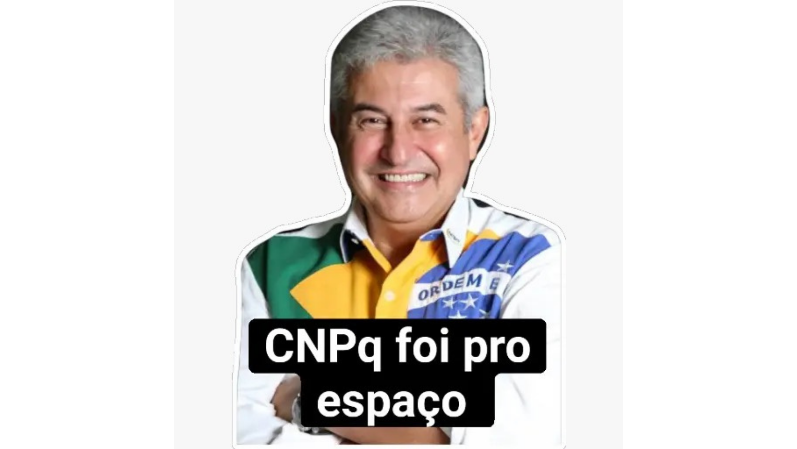 Uma meme que circula nas redes sociais neste domingo (10) mostra Marcos Pontes, ministro da Ciência, Tecnologia e Inovação, junto da frase “CNPq foi pro espaço”.
