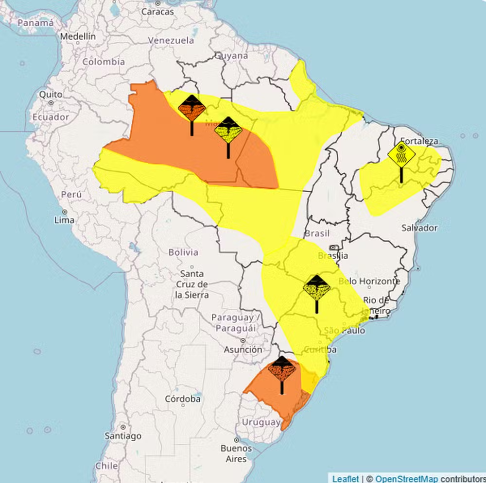 “A frente fria traz essas características, de pancadas de chuva, trovoadas e rajadas de vento. Há ainda a possibilidade de uma breve queda de granizo”, alertou a meteorologista Andrea Ramos ao Globo. No Centro-Oeste, a convergência de umidade da Amazônia favorece pancadas rápidas e tempo abafado, com até 35°C em Cuiabá. No Norte, a Zona de Convergência Intertropical aumenta o risco de tempestades à tarde.