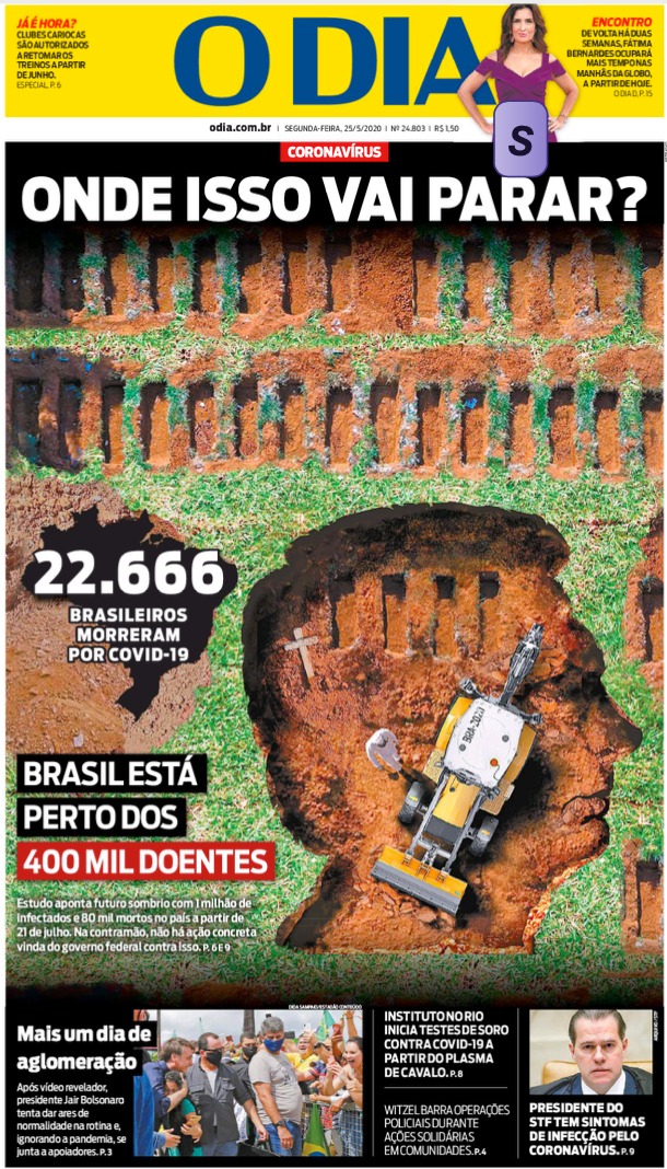 Capa do jornal O Dia viraliza com as covas do coronavírus e a silhueta do verme