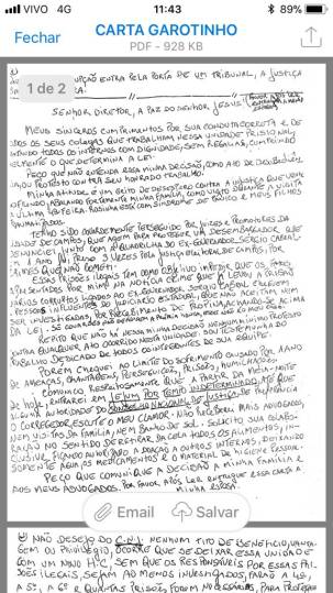 O ex-governador do Rio, Anthony Garotinho, escreveu uma carta para dizer por que decidiu fazer greve de fome. Ele está preso em Bangu – incrível, preso por crime eleitoral — e teve rejeitado todos os recursos que apresentou. Sua prisão foi decretada a partir de uma investigação conduzida por um delegado da Polícia Federal que se manifestou, nas redes sociais, a favor de um adversário político dele e da mulher, Rosinha, durante a campanha. O juiz eleitoral da cidade também é seu adversário declarado. Não houve mala de dinheiro, conta no exterior ou evidência de enriquecimento ilícito, nada. Mas ele está preso. Como não interpretar essa prisão como cárcere político? Garotinho diz, na carta, que acredita estar preso por ter denunciado o grupo político de Sergio Cabral. Ele denunciou também a Globo. A imagem da carta, transmitida por whatsapp, foi publicada pela coluna Radar.