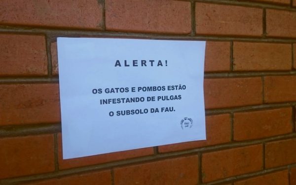Em nota ao G1, naquele momento, a diretoria da Faculdade de Arquitetura e Urbanismo (FAU) informou que os cartazes orientavam as pessoas para “não alimentarem animais nas dependências da Faculdade, pois há o risco de ocorrer uma infestação de pulgas no subsolo da unidade.”