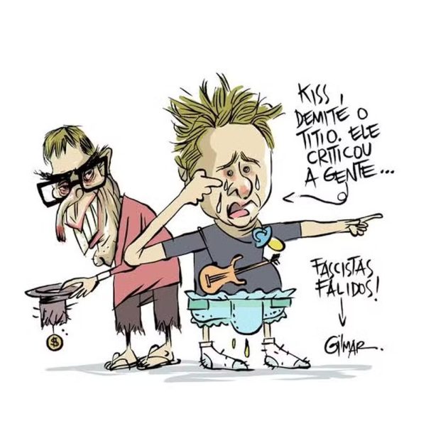 Segundo a coluna de Lauro Jardim no jornal O Globo, ele afirmou que as charges seriam ofensivas e caluniosas. O guitarrista da banda, Marcos Kleine, também entrou com uma ação e foi derrotado. Ambos foram criticados após pedir a demissão de um jornalista da Kiss FM, de São Paulo, por terem sido chamados de “fascistas falidos” pela profissional.