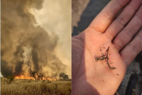 Moradores registram ‘chuva de cinzas’ após incêndio causado por queda de balão