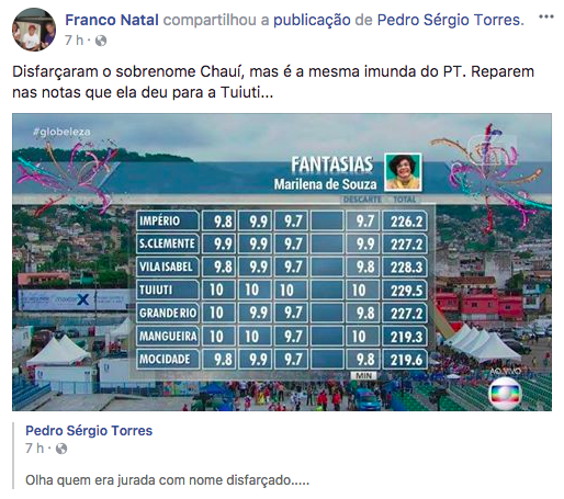 Cidadão de bem descobre “Marilena Chauí” entre jurados do Carnaval que deram notas altas à Tuiuti