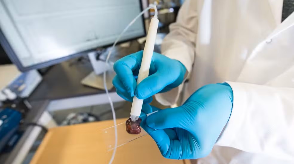 A tecnologia, que utiliza espectrometria de massas para criar uma “assinatura química” de cada tecido, está em testes clínicos no Hospital Albert Einstein, em São Paulo, em parceria com a Thermo Fisher Scientific. Segundo os pesquisadores, o procedimento é simples: o cirurgião encosta a ponta da caneta no tecido suspeito, uma microgota de água coleta as moléculas e o resultado é processado em segundos.