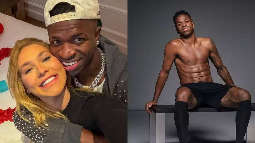 O atacante Vini Jr movimentou suas redes sociais ao publicar novos cliques em uma sessão de fotos sem camiseta. Em um dos registros, o jogador do Real Madrid aparece sentado em um banco, usando apenas um shorts preto e exibindo o abdômen. As imagens, publicadas em sua conta do Instagram nesta quinta-feira (20), rapidamente viralizaram.