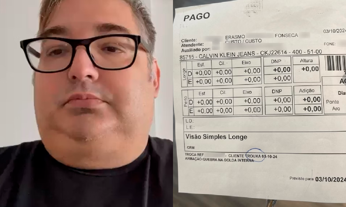 Um advogado de Santos, litoral de São Paulo, se viu em uma situação constrangedora após ser identificado como “cliente trouxa” em um recibo de uma ótica. Erasmo Fonseca, de 47 anos, contou que foi até a Belliótica para trocar os óculos do filho, de 14 anos, em setembro. Porém, o problema se agravou quando a armação quebrou dias depois, e ele retornou ao estabelecimento para solicitar o reparo.