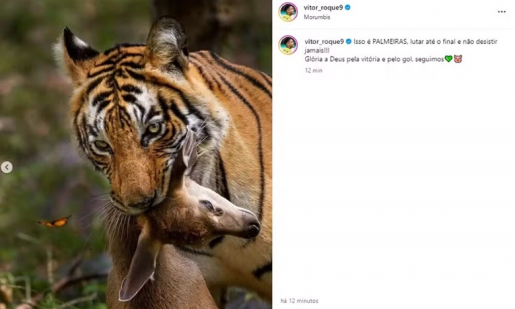 Vitor, você não é um moleque. Você tem 20 anos, você tem capacidade cognitiva para entender o que é certo e o que é errado. Nós acreditamos nisso. E acreditamos que você entendeu o recado da diretoria do Palmeiras quando pediu para que você apagasse a última foto do carrossel que postou no Instagram. Porque você, mesmo sem imaginar, incitou violência contra muita gente. Um tigre comendo a cabeça de um veado dá moral para outros homens saírem por aí matando outras pessoas.