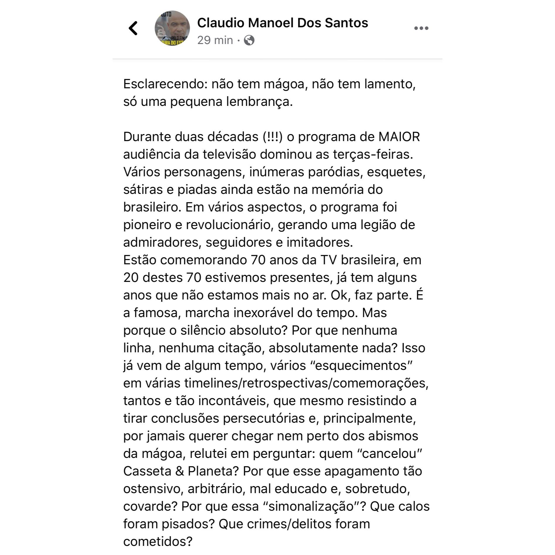 Claudio Manoel, que fazia o Seu Creysson, escreveu um post sobre a “simonalização” do programa.