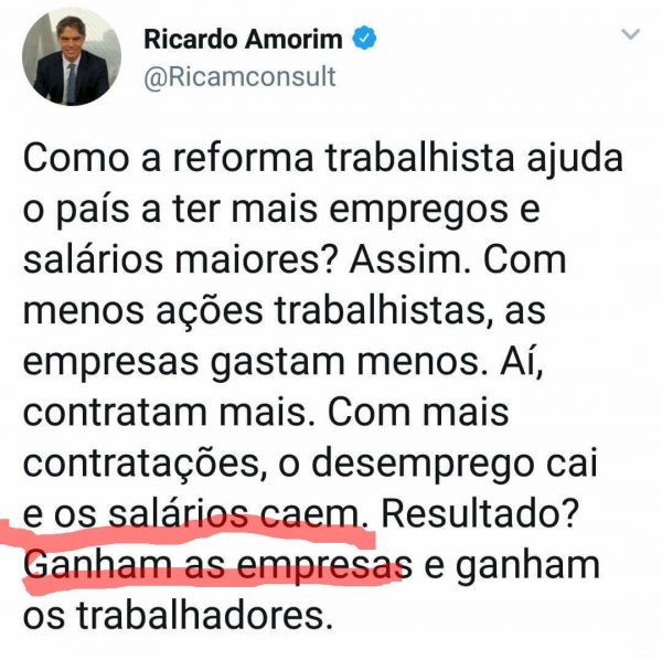 Comentarista do Manhattan Connection diz que reforma trabalhista terá “salários maiores” porque “salários caem”