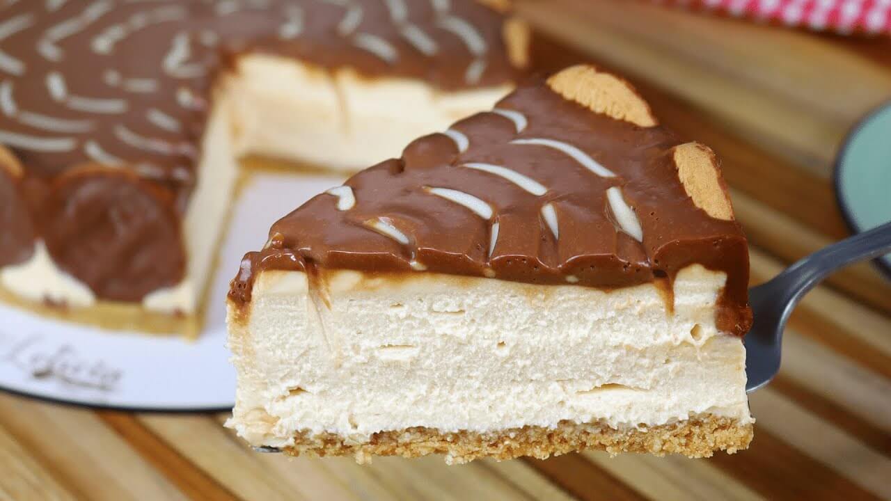 Despeje o recheio sobre a base de biscoito já resfriada e nivele bem. Leve à geladeira por pelo menos 4 horas para que o recheio fique firme. Para a cobertura, derreta 100g de chocolate meio amargo com 1 colher de sopa de manteiga, mexa até ficar liso e despeje sobre a torta. Deixe a torta na geladeira por mais 30 minutos.