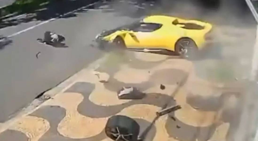 Imagens de câmeras de segurança mostram o momento em que o motorista, trafegando em alta velocidade, perde o controle do carro ao tentar uma ultrapassagem na Avenida Heitor Penteado. Em seguida, a Ferrari colide violentamente contra o muro de uma residência.