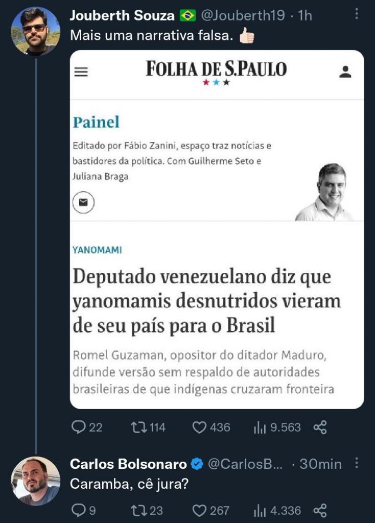 Guzamana é um dos representantes da região amazônica na Assembleia da Venezuela e também integra o Parlamento Amazônico. Na matéria, a Folha simplesmente divulgou a fala do deputado, sem contextualização, feita em uma de suas redes sociais acerca da situação de calamidade vivida pelos povos Índigenas Yanomami.