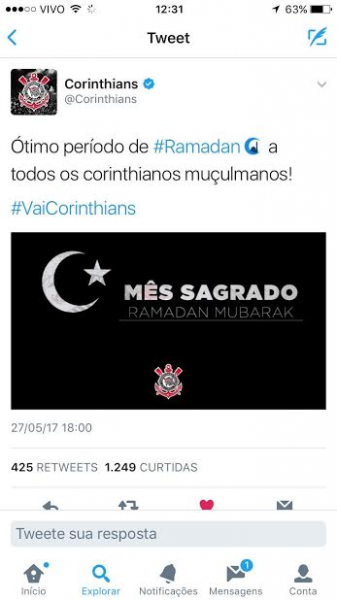 Corinthians homenageia o mês sagrado muçulmano nas redes sociais e provoca reações xenofóbicas
