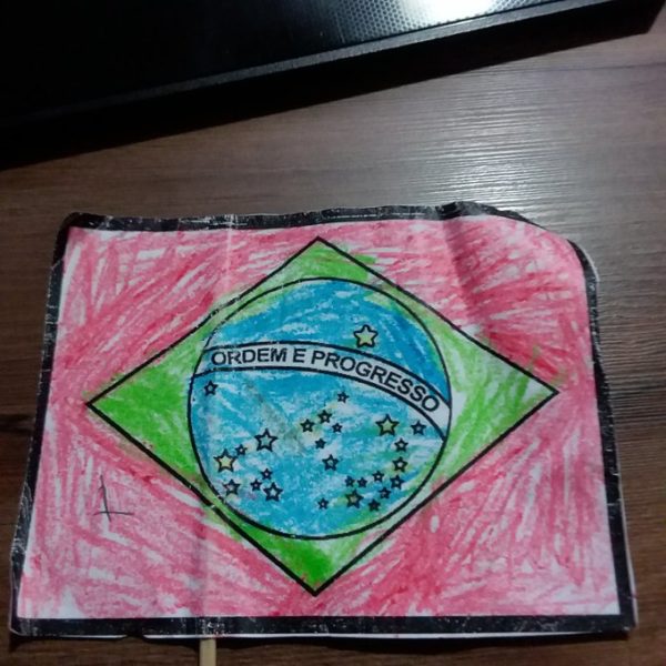 Criança pinta bandeira do Brasil de vermelho e professora pede para falar com o pai