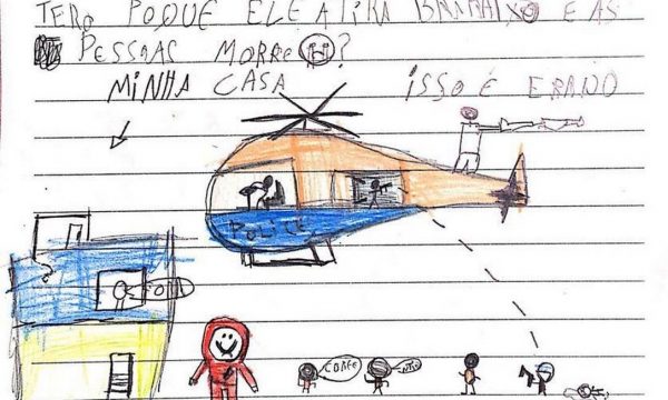 “Um dia eu estava no pátio da escola fazendo educação física. De repente, o helicóptero passou dando tiro para baixo. Aí, todo mundo correu para o canto da arquibancada. Quando passou o tiro, a gente correu para dentro da escola até minha mãe me buscar. Quando deu mais tiro, eu estava em casa”, escreve uma criança, moradora do Complexo da Maré, Zona Norte do Rio. A carta está entre as mais de 1.500 que foram entregues por moradores da favela ao Tribunal de Justiça do Rio de Janeiro (TJ-RJ) nesta segunda-feira.