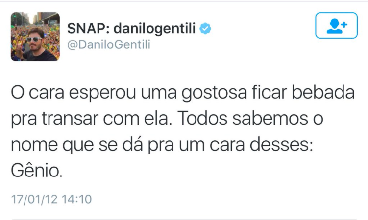 Danilo Gentili apaga do Twitter elogio ao “cara que esperou uma gostosa ficar bêbada para transar com ela”