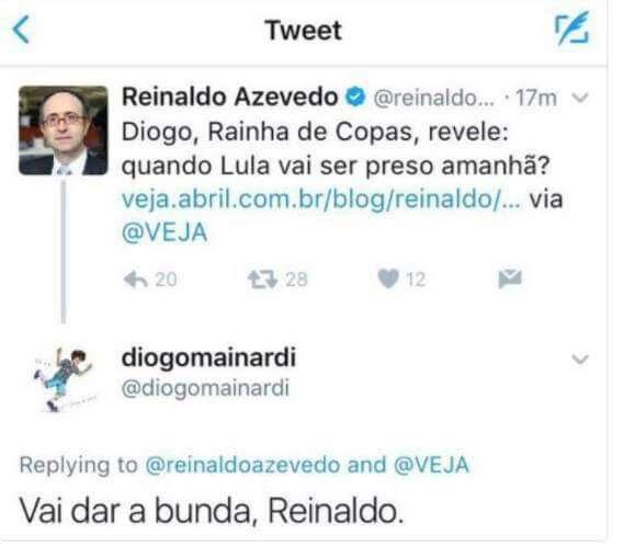 De Diogo Mainardi para Reinaldo Azevedo, com carinho: “Vai dar a bunda, Reinaldo”